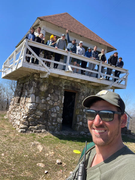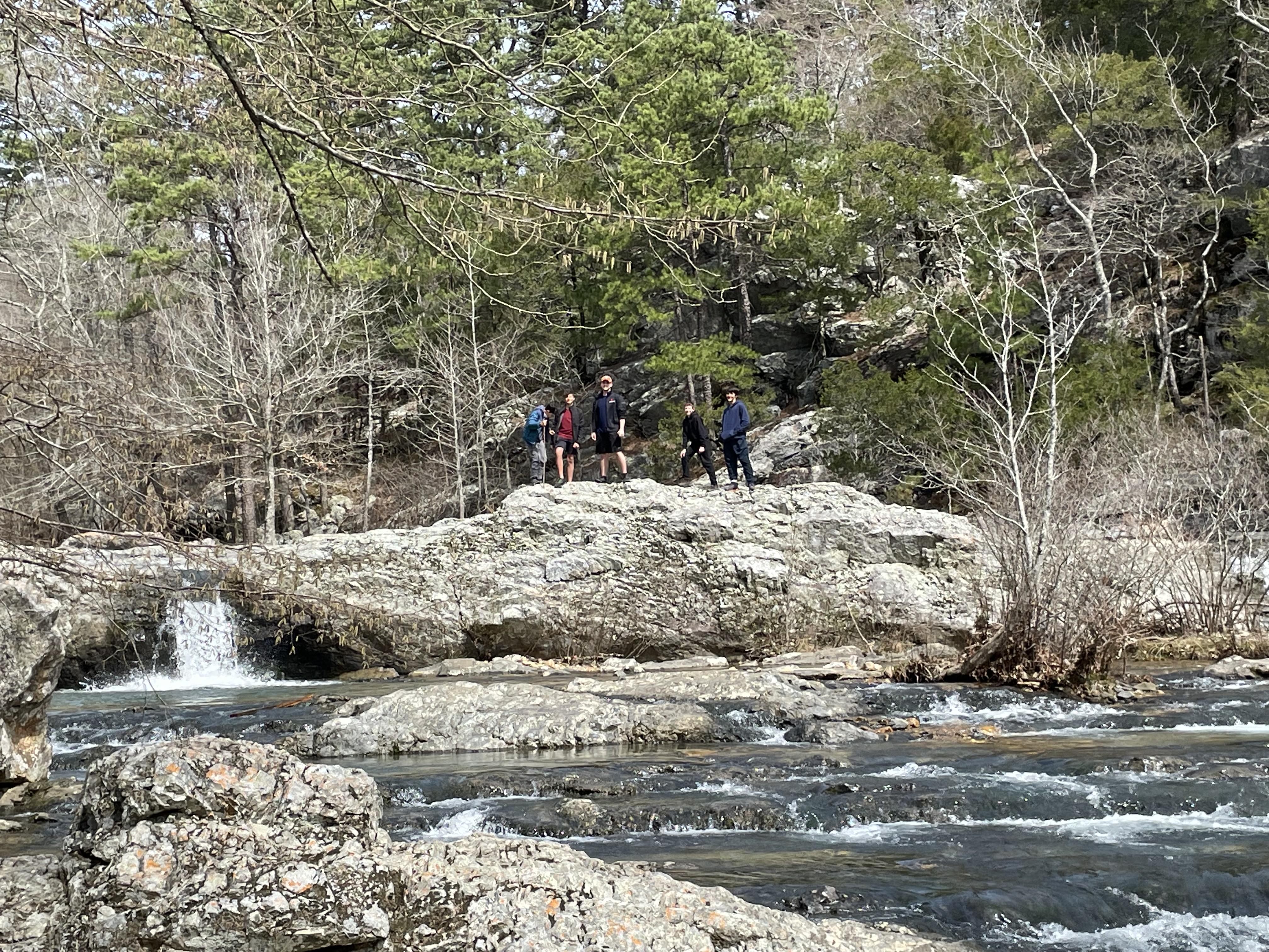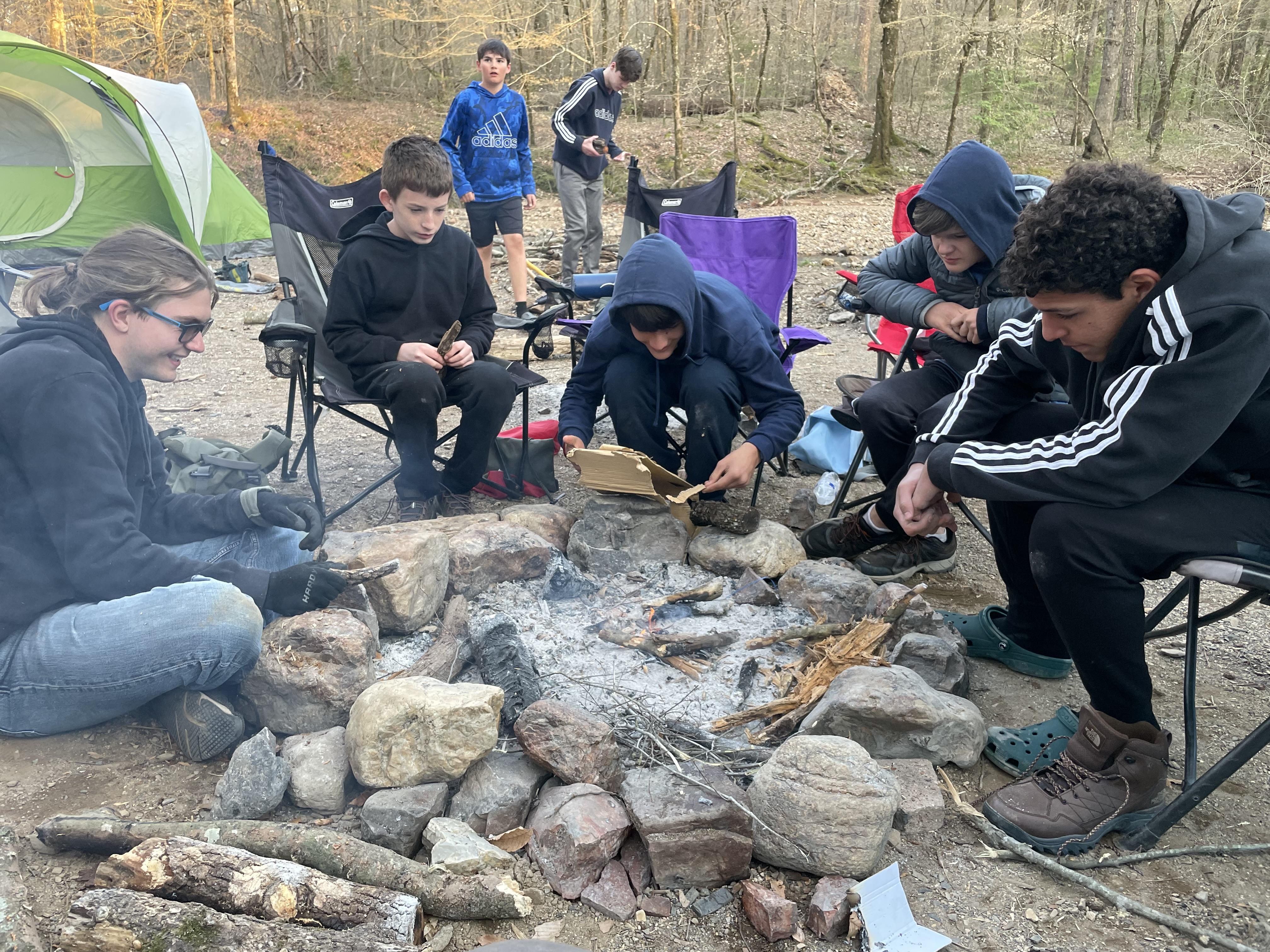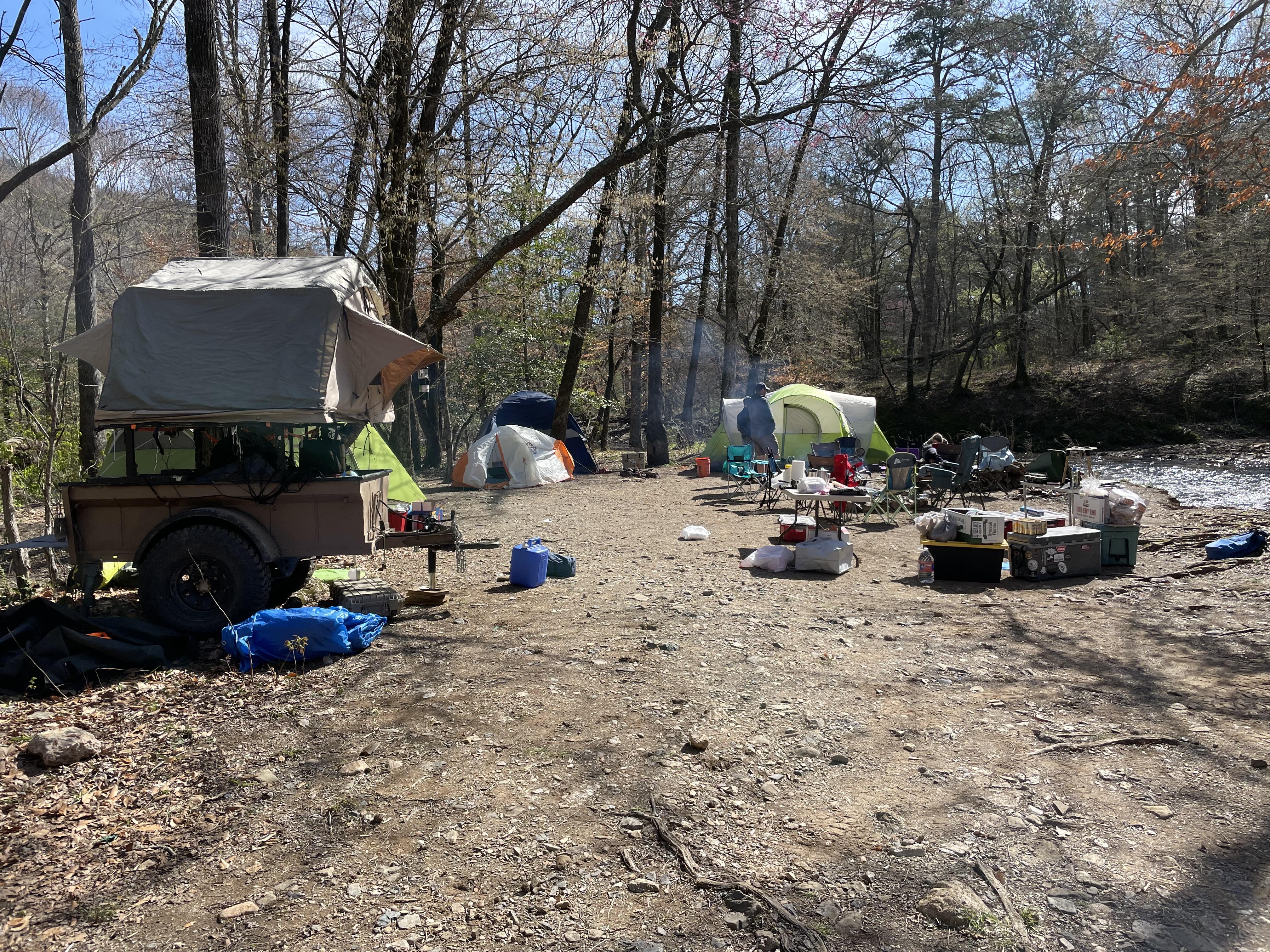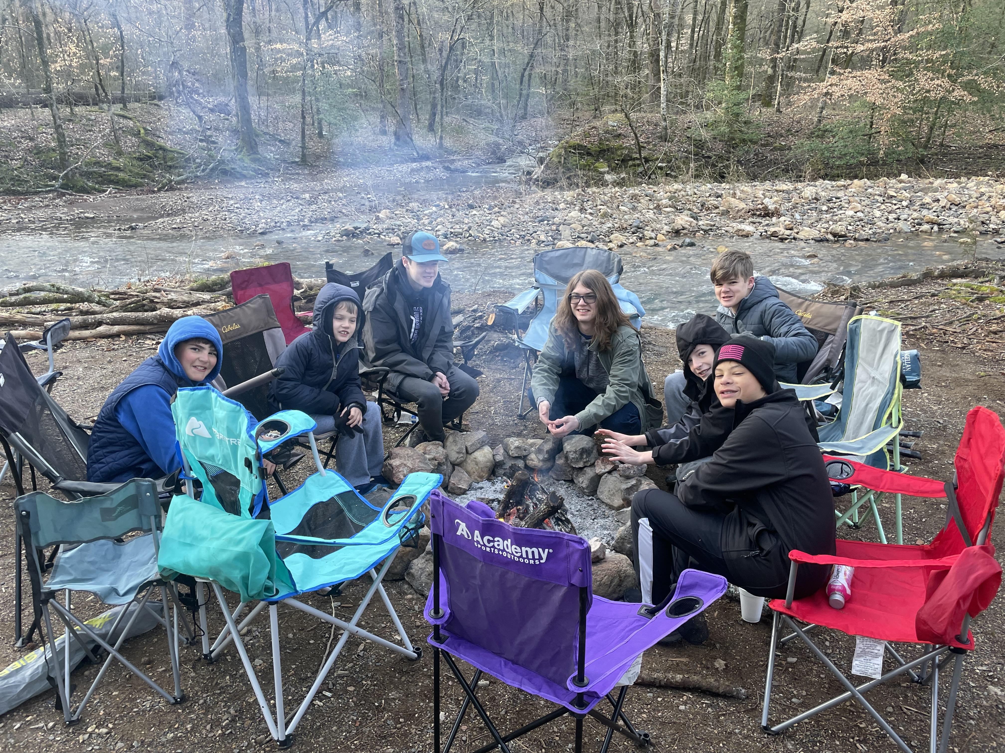 Annual guy's camping trip in Ouachita National Forest, Arkansas. Days in the 50F's, nights down mid-20F's. Sixteen guys, ages 6 to 50.